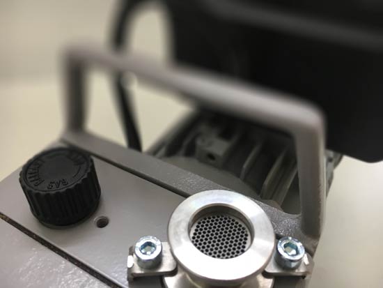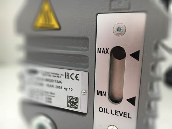 На входе двухступенчатый вакуумный насос оснащен обратным клапаном, устраняющий натекание воздуха/газа и перетекание вакуумного масла в вакуумную систему после выключения вакуумного насоса.