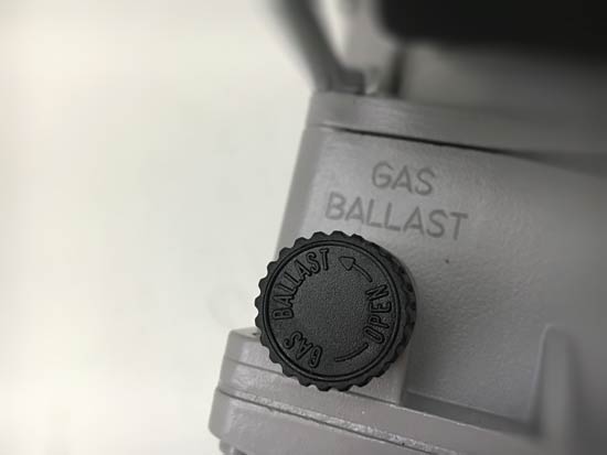 - Газобалластный клапан: путем напуска атмосферного воздуха на стадии сжатия и выпуска откачиваемой среды из насоса позволяет уменьшить конденсацию паров в насосе
